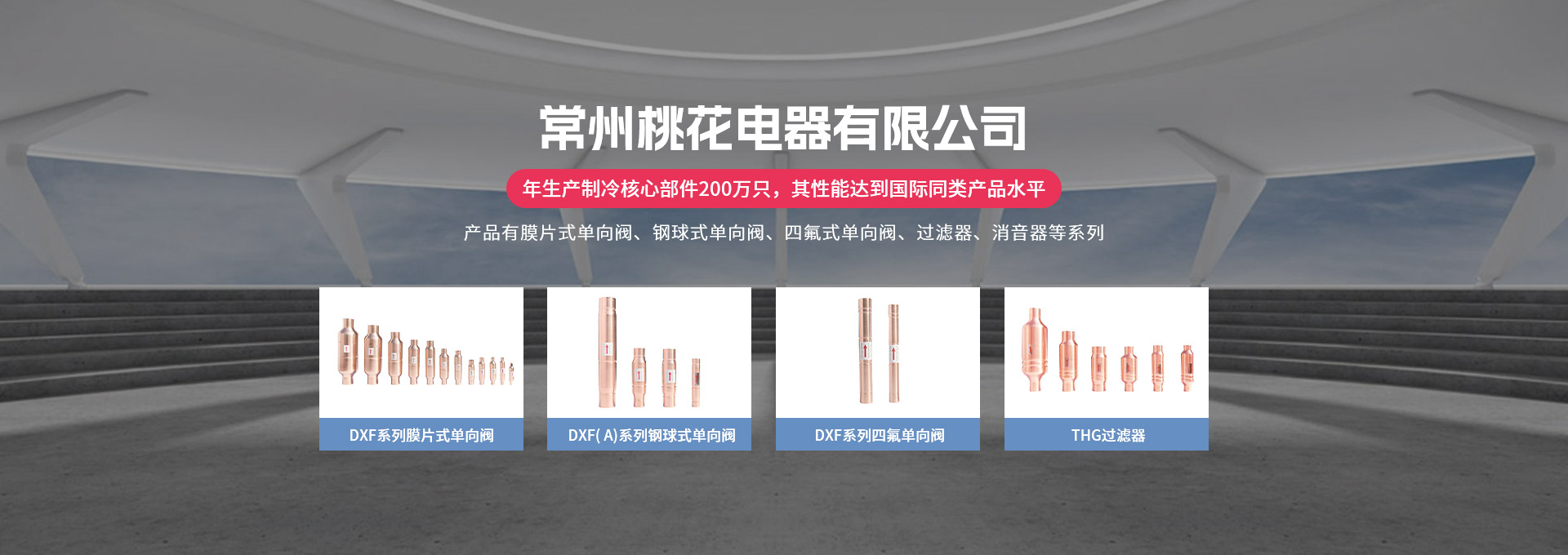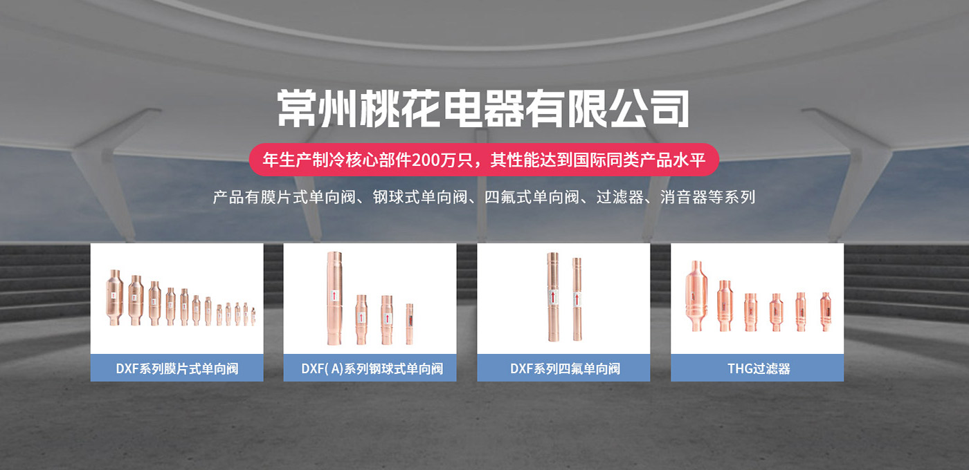常州桃花電器有限公司地處中國長江“金三角”之稱的上海至南京高速公路、城際高鐵、常州高新經(jīng)濟(jì)技術(shù)開發(fā)區(qū)路段,交通便利、技術(shù)力量十分雄厚。它是集研究、開發(fā)設(shè)計、制造和經(jīng)營制冷核心部件的企業(yè),主要生產(chǎn)中央空調(diào)上使用的制冷部件。產(chǎn)品有膜片式單向閥、鋼球式單向閥、四氟式單向閥、過濾器、消音器等系列。年生產(chǎn)制冷核心部件200萬只,其性能達(dá)到國際同類產(chǎn)品水平。  企業(yè)擁有先進(jìn)的科學(xué)技術(shù)、國際先進(jìn)的生產(chǎn)加工設(shè)備和精密的檢測儀器,并已通過ISO9001質(zhì)量體系及CE認(rèn)證,公司歷史悠久,2000年起,經(jīng)過長期積累、沉淀,經(jīng)驗(yàn)豐富,從而保證了產(chǎn)品的高質(zhì)量、高性能、高耐用性。企業(yè)產(chǎn)品在國內(nèi)外市場具有較高的知名度,深受眾多中外品牌制冷客商的好評。主要客戶有約克、麥克維爾、美的、開利、特靈、頓漢布什、清華同方、天加等.并出口北美、歐洲、東南亞等地區(qū)。  高品質(zhì)產(chǎn)品是企業(yè)的保證,周到服務(wù)是合作友誼的承諾,企業(yè)本著“求